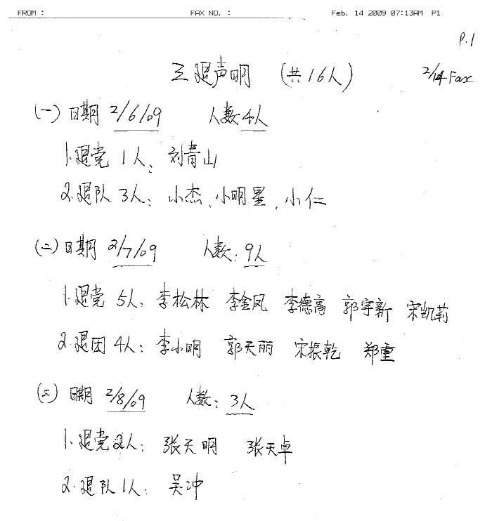 1,退!党! 5人:李松林 李金凤 李德高 郭宇新 宋凯莉